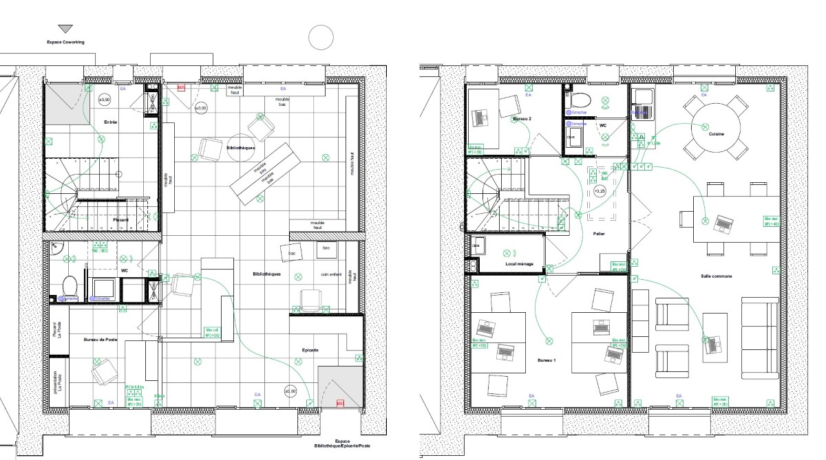 Transformation en bilbiothèque et bureau de poste :